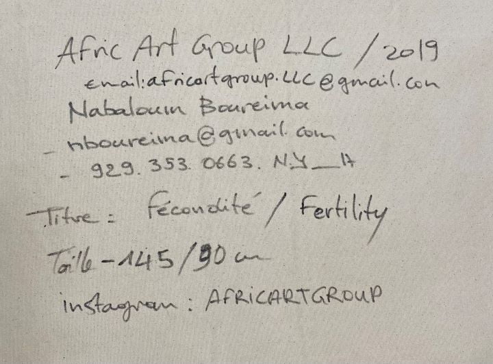 Sacred Nourishment” pays homage to the sacred bond between fertility and sustenance. Boureima Nabaloum’s semi-abstract composition exudes warmth and vitality, symbolizing the nurturing embrace of Mother Earth and the life-giving nourishment she provides to all beings.